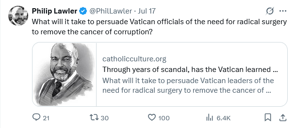 What is abundantly clear—and not just in cases of clerical abuse—is that the Secretariat of State writes its own rules. No one who followed the “trial of the century” carefully could possibly believe that the prosecutors exposed all of the financial chicanery that cost the Holy See millions of dollars. No Catholic donor can be comfortable with the fact that Cardinal Becciu, the central figure convicted in that trial, successfully scuttled a plan by the late Cardinal Pell for an independent audit of Vatican offices, nor that the same Cardinal Becciu forced the resignation of the Vatican’s own auditor general, who had reported flagrant evidence of waste and fraud.