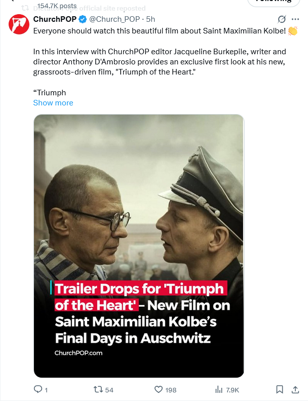 […] Cætera. . . Popular Cultural Analysis, Punditry, and News:Triumph of the Heart: New St. Maximillian Kolbe Film – Don McClarey at The American […]