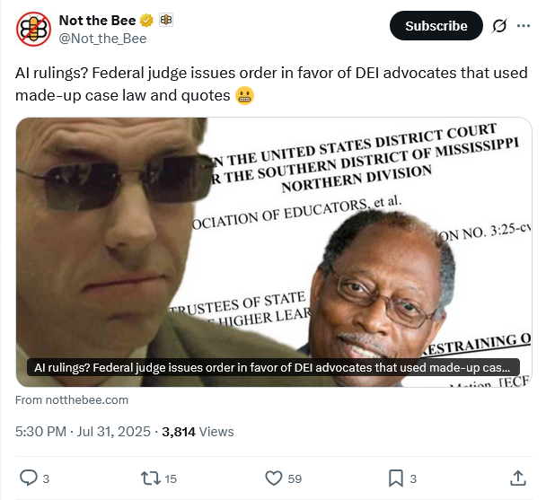 Assuming our host is correct, the judge trusted his clerk to get it right and the clerk trusted AI to get it right. Trust, not verified.