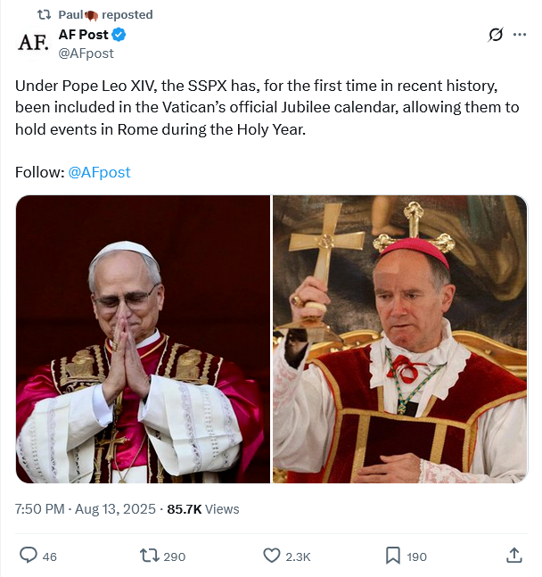 […] Leo XIV Sweet Order’s Reign Embrace:Pope Leo Allows the SSPX to Hold Events in Rome During the Holy Year – The American […]