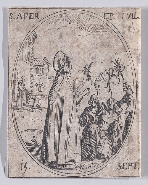 The brother of Saint Apronia. Sixth century bishop of Toul in what is now France. His tomb became a place of miracles and was a popular pilgrimage site.