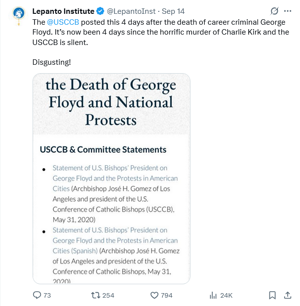 Charlie Kirk was the exact opposite of some of our Bishops, sadly.