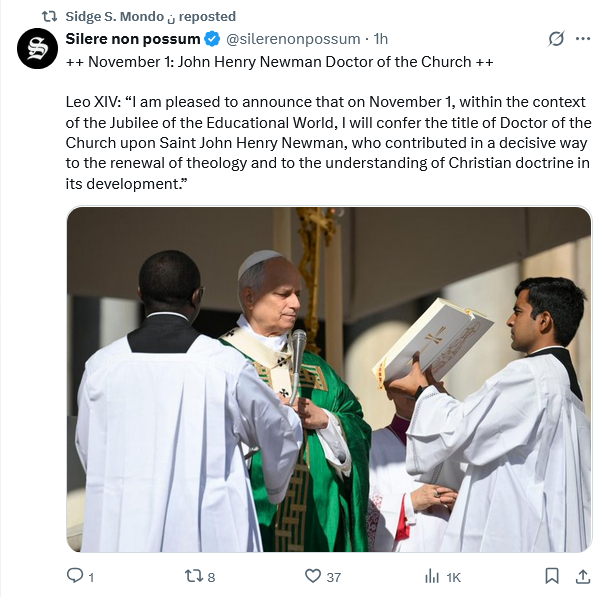 I have never lacked edification after reading Cardinal Newman. Here he is on papal infallibility: