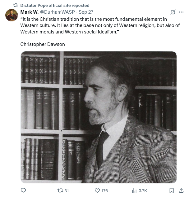 An supporter of Western Civilization who does not value Christianity is a man sawing off the limb on which he sits.