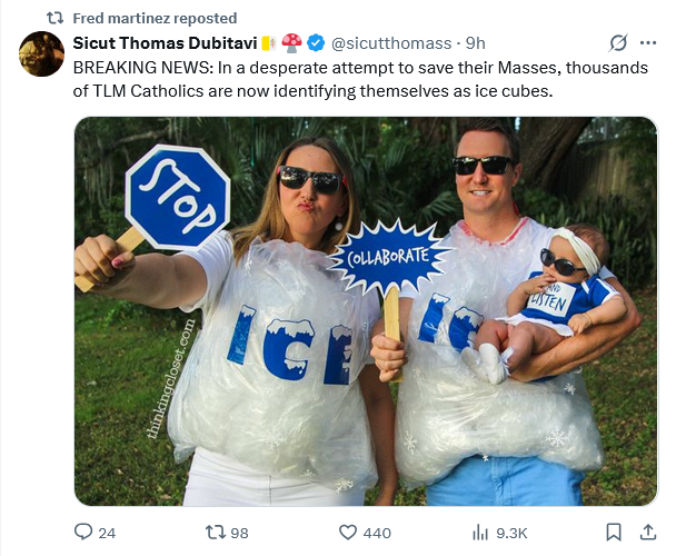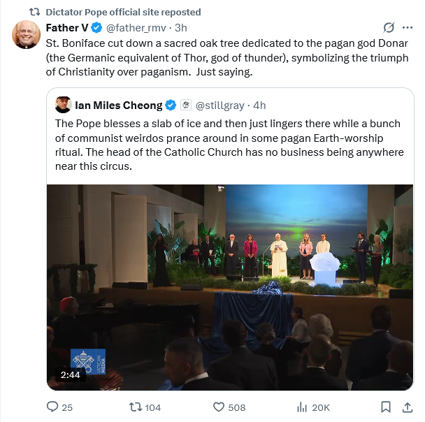 Even though I continue in disappointment over these recent actions by Pope Leo, I’m still praying that he’s in the midst of correcting course. My mental excuse is that these activities were planned long before he became the Holy Father, and once the old calendar is cleared, we won’t see stuff like this anymore… right???? The below sums up my hopes”