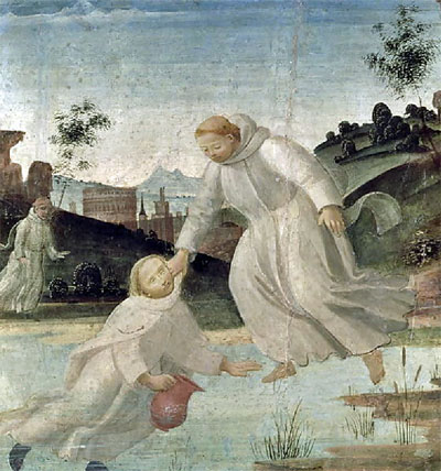 THE REPUTATION of the great sanctity of St. Benedict, whilst he lived at Sublaco, being spread abroad, the noblest families in Rome brought their children to him to be educated by him in his monastery. Equitius committed to his care, in 522, his son Maurus, then twelve years of age, and the patrician Tertullus his son Placidus, who was no more than seven. Philip of Macedon, recommending his son Alexander the Great to Aristotle, whom he had chosen for his preceptor, in his letter upon that subject, gave thanks to his gods not so much for having given him a son as for providing him with such a master for his education. With far more reason Tertullus rejoiced that he had found such a sanctuary, where his son, whilst his heart was yet untainted by the world, might happily escape its contagion. St. Gregory relates, that Placidus being fallen into the lake of Sublaco, as he was fetching some water in a pitcher, St. Benedict, who was in the monastery, immediately knew this accident, and, calling Maurus said to him: “Brother, run, make haste; the child is fallen into the water.” Maurus, having begged his blessing, ran to the lake, and walked upon the water above a bow-shot from the land to the place where Placidus was floating, and, taking hold of him by the hair, returned with the same speed. Being got to the land, and looking behind him, he saw he had walked upon the water, which he had not perceived till then. St. Benedict ascribes this miracle to the disciple’s obedience; but St. Maurus attributed it to the command and blessing of the abbot, maintaining that he could not work a miracle without knowing it. Placidus decided the dispute by saying: “When I was taken out of the water I saw the abbot’s melotes upon my head, and himself helping me out.” The melotes was a sheep’s skin worn by monks upon their shoulders. We must observe that St. Placidus, being very young had not yet received the monastic tonsure and habit. This miraculous corporal preservation of Placidus may be regarded as an emblem of the wonderful invisible preservation of his soul by divine grace from the spiritual shipwreck of sin. He advanced daily in holy wisdom, and in the perfect exercise of all virtues, so that his life seemed a true copy of that of his master and guide, the glorious St. Benedict; who, seeing the great progress which divine grace made in his tender heart, always loved him as one of the dearest among his spiritual children, and took him with him to Mount Cassino in 528. The senator Tertullus, principal founder of this monastery, made them a visit soon after their arrival there, saw with pleasure the rising virtues of his son Placidus, and bestowed on St. Benedict part of the estates which he possessed in that country, and others in Sicily. The holy patriarch founded another monastery upon these latter near Messina, a great city with a fine harbour, upon the straits which part Italy from Sicily. Of this new colony St. Placidus was made abbot. Dom Rabache de Freville, the present sub-prior of St. Germain-des-Prez, in his manuscript life of St. Maurus, places the arrival of that saint at Angers in France, and the foundation of the abbey of Glenfeuil, in 543, the very year in which St. Benedict died. St. Placidus is supposed to have gone to Sicily in 541, a little before the holy patriarch’s death, being about twenty-six years of age. He there founded a monastery at Messina. The spirit of the monastic state being that of penance and holy retirement, the primitive founders of this holy institute were particularly watchful entirely to shut the world out of their monasteries, and to guard all the avenues through which it could break in upon their solitude. Its breath is always poisonous to those who are called to a life of retirement. Charity may call a monk abroad to serve his neighbour in spiritual functions; but that person only can safely venture upon this external employment who is dead to the world, and who studies to preserve in it interior solitude and recollection, having his invisible food and sacred manna, and making it his delight to converse secretly in his heart with God, and to dwell in heaven. This spirit St. Placidus had learned from his great instructor, and the same he instilled into his religious brethren. 1 He had not lived many years in Sicily before a Pagan barbarian, with a fleet of pirates from Africa rather than from Spain, then occupied by Arian Goths, not by Pagans, landed in Sicily, and out of hatred of the Christian name, and the religious profession of these servants of God, put St. Placidus and his fellow-monks to the sword, and burnt their monastery, about the year 546.