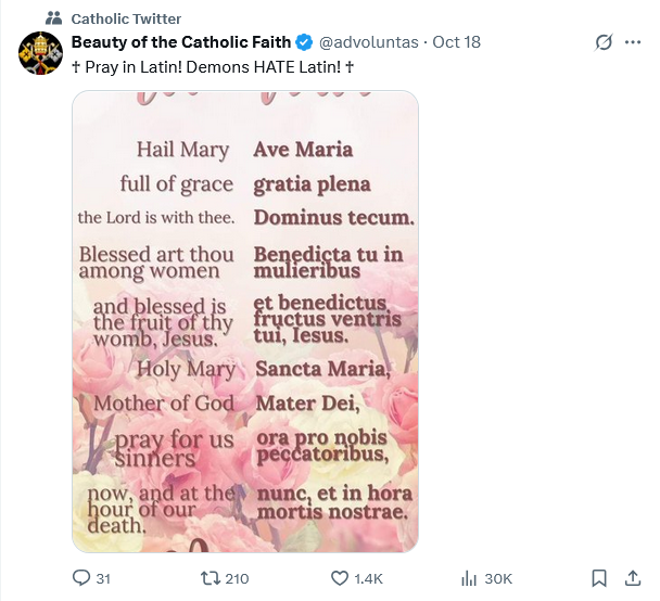 I probably should specify that this view of use of Latin assumes that clergy and laity mostly had virtuous, holy intentions in mind. If they had instead harbored serious doubts or even disbelieved the faith, …Latin would have become even more blasphemous than any other language.