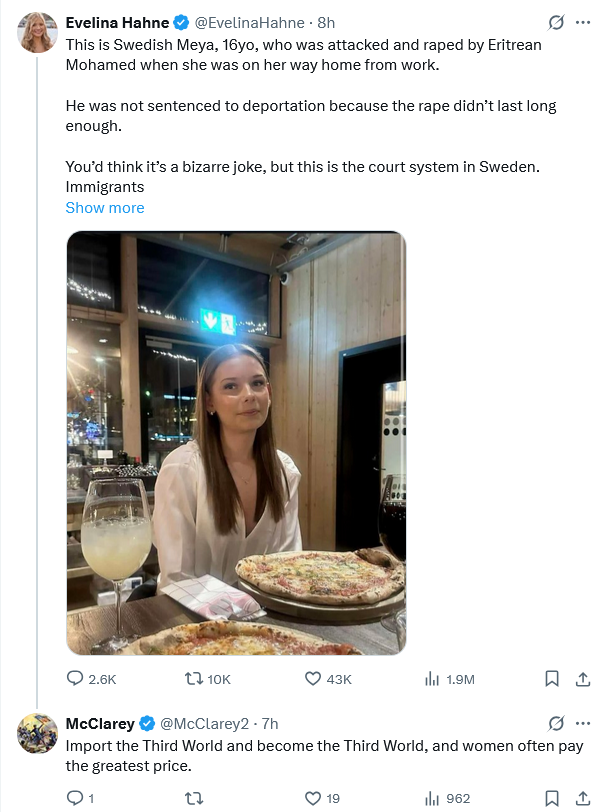 NB, Sweden is not anywhere near any of the world’s mass refugee generators. Anyone seeking refugee status is Sweden (and their dependents) should be placed in detention and kept there until their case is fully processed. Unless they were already in Sweden for legitimate reasons when their situation at home changed or they hopped on the first plane out of Dodge and it landed in Stockholm, they should be summarily denied refugee status and deported to their home country, to a country adjacent, or to the first place they alighted after leaving their home country.