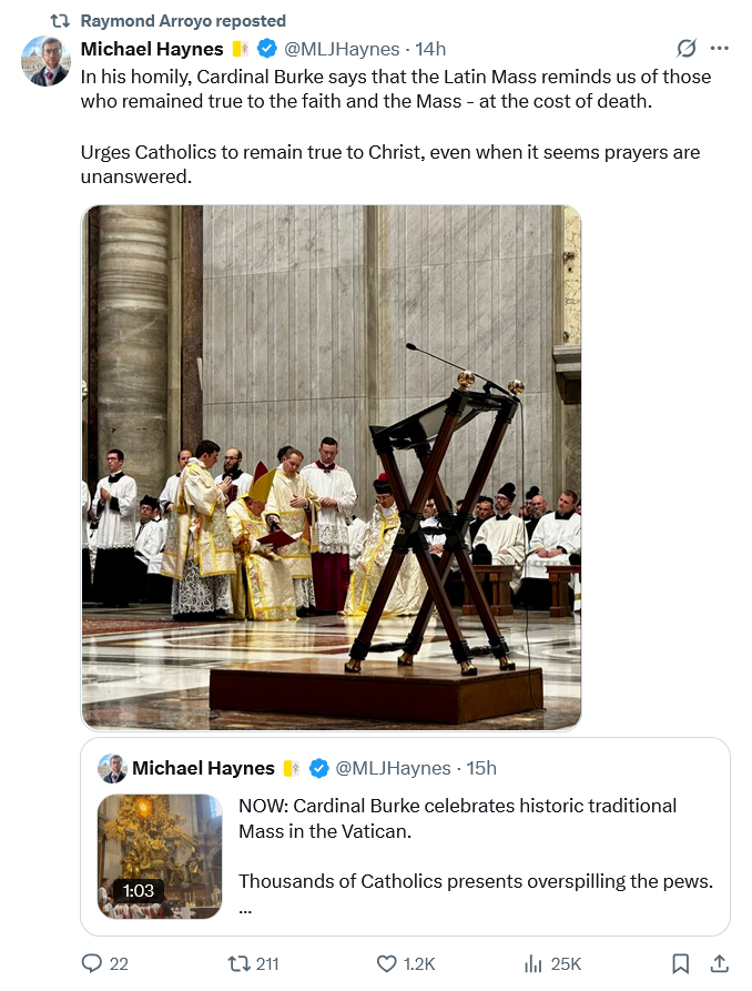 Traditional Mass Said at Saint Peter’s by Cardinal Burke