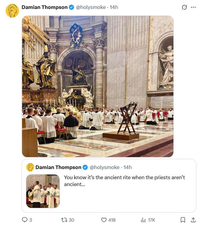 “You know it’s the ancient rite when the priests aren’t ancient” 😀