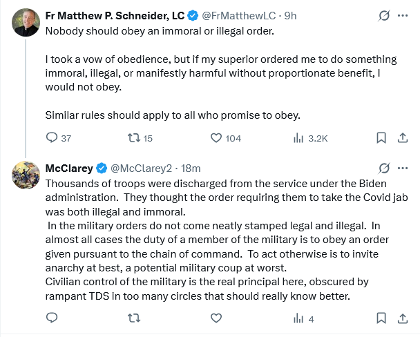 Also, Fr Schneider was among those cheering punishing those refusing to take the jab. I heard of at least one instance of where military superiors used his writings against a Catholic serviceman refusing the jab on religious grounds.
