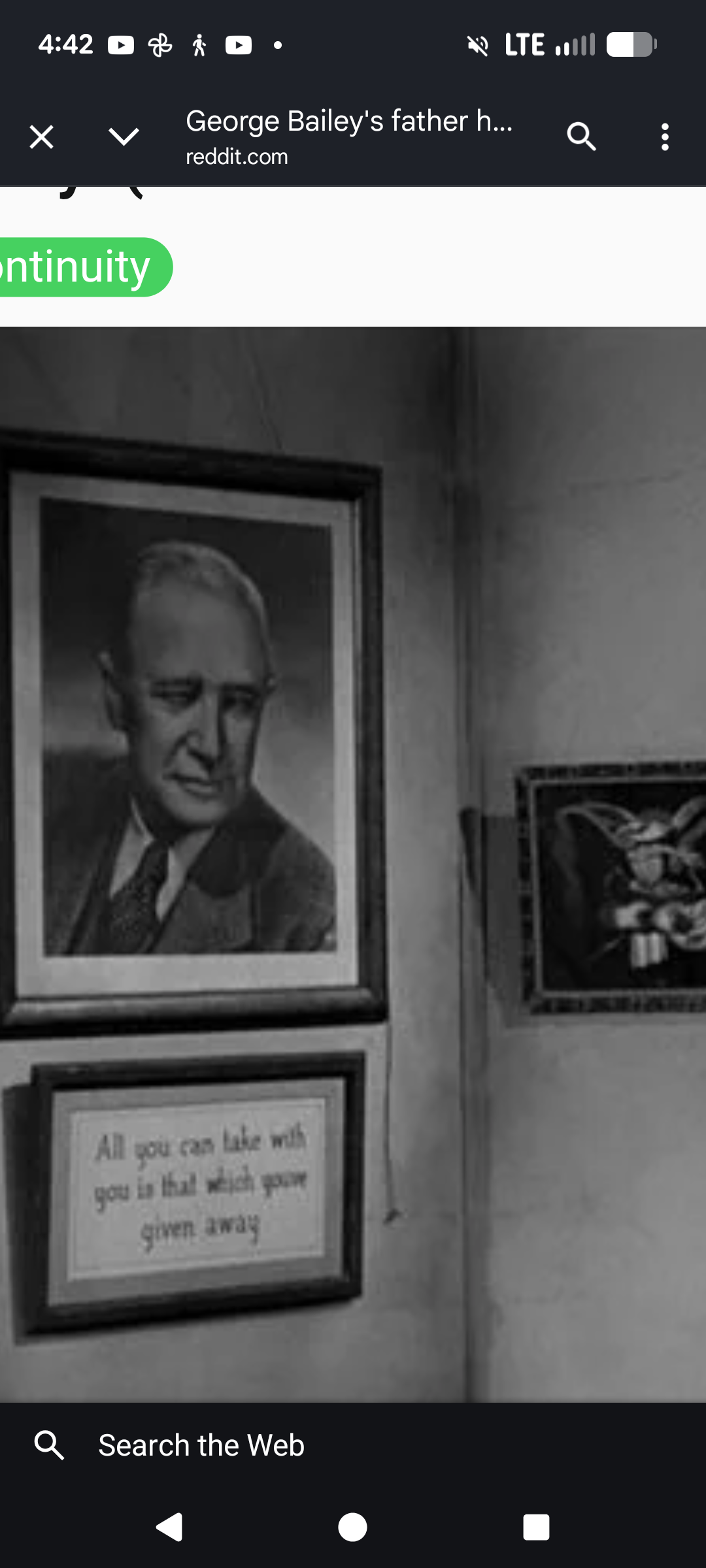 Uncle Billy’s brother, who started the Baily’s Building and Loan, had a very important saying hanging under a photo of George’s dad in his office;