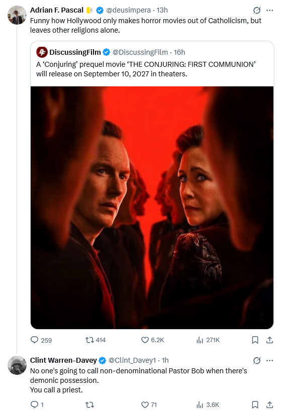 My best friend, the son of a Lutheran minister, pointed out that movies never use a Protestant pastor to confront Satan or demonic possession, etc