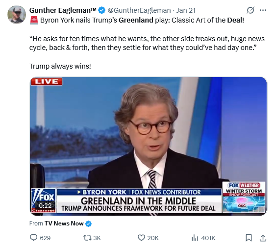 The Three Blind Mice released their statement condemning the use of force to take Greenland, just before Trump announced the Greenland Deal. Trump over the years has been greatly helped by the fact that the Trump who lives in the minds of most of his enemies bears little relationship to the actual man.