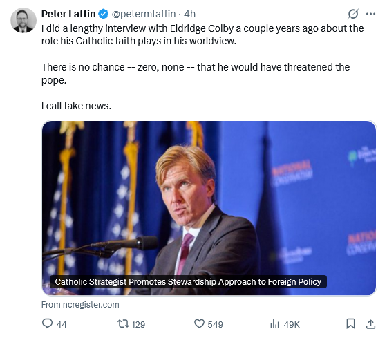 This ridiculous story assumes that the Papal Nuncio would be “summoned” by someone at the Pentagon, rather than “summoned” by Marco Rubio, our Catholic Secretary of State. Then that he was subjected to a bitter diatribe by some unnamed person at the Pentagon and that the Pope was threatened with the fate of Dante’s least favorite Pope, Boniface VIII. Most Catholics know nothing about Boniface VIII. Most priests, if asked about him, would be trying to remember the name from their halcyon days at seminary.