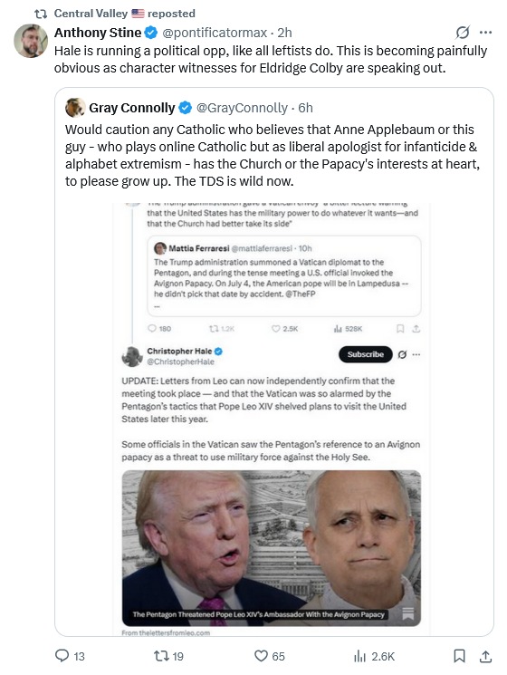 Hale ran Catholics for Harris back in 2024 and in 2016 he was Executive Director of “Catholics in Alliance for the Common Good” a Soros funded astro turf group. This story stinks of a Leftist political hit job.
