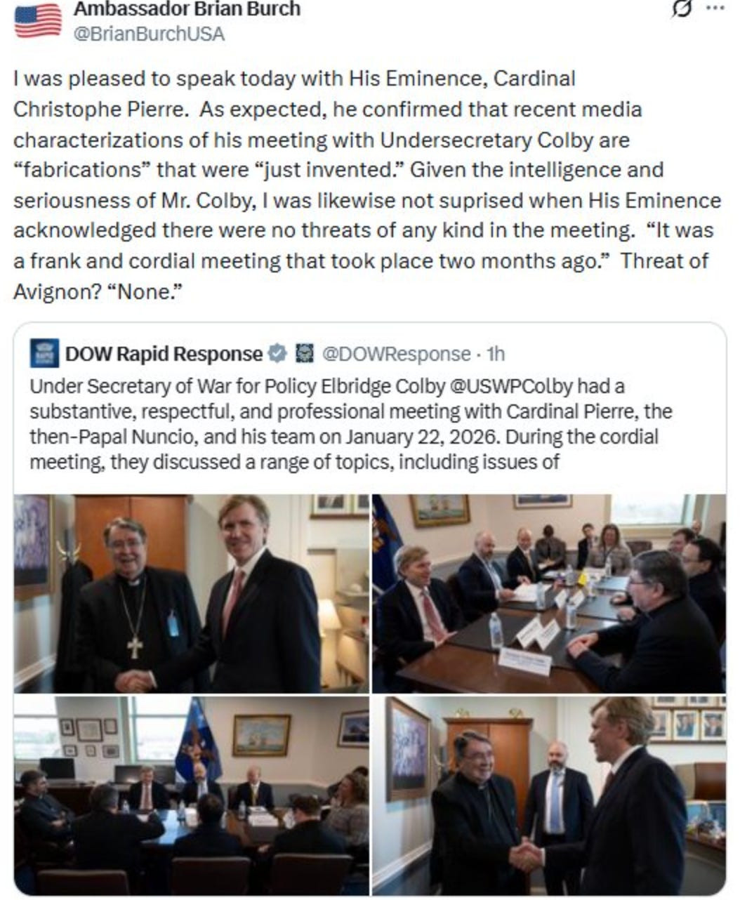 Just saw that the US ambassador to the Holy See (Brian Burch) spoke to Cardinal Pierre today, and, according to Burch, Pierre said the reports from the Free Press were “fabricated” and “just invented.”