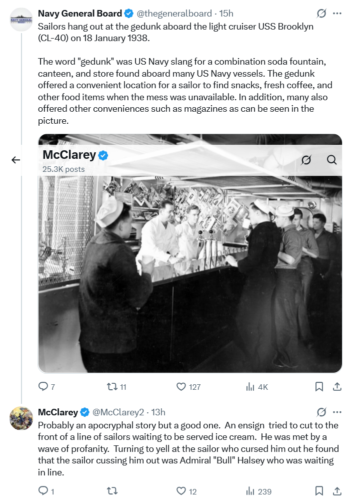 The food aboard my submarine was rather good while supplies lasted. The cooks did a very good job keeping us well fed. As I have said elsewhere, the only two reasons for a submarine to surface are (1) food and (2) toilet paper, since we made all our own fresh water and air from the electricity provided by a 190MWth pressurized water reactor that didn’t need refueling but once every 20 years of so (nowadays it’s more like 40 years, the life of the boat).