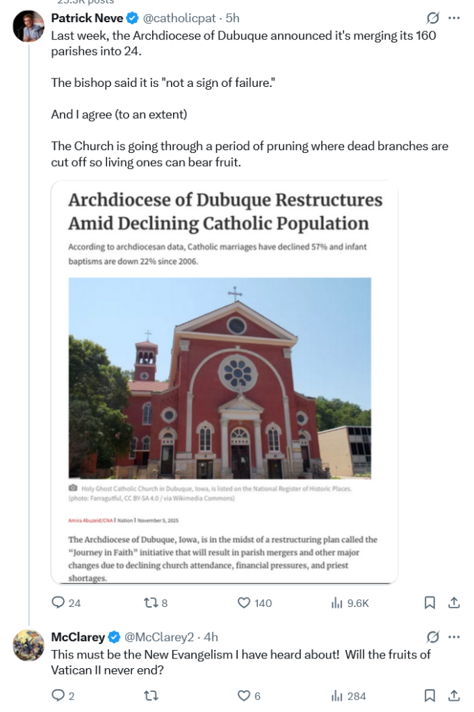 To experience the soul crushing nature of your own parish closing with so many others, then be told these were dead branches and that’s it’s good thing, is not Christ like.