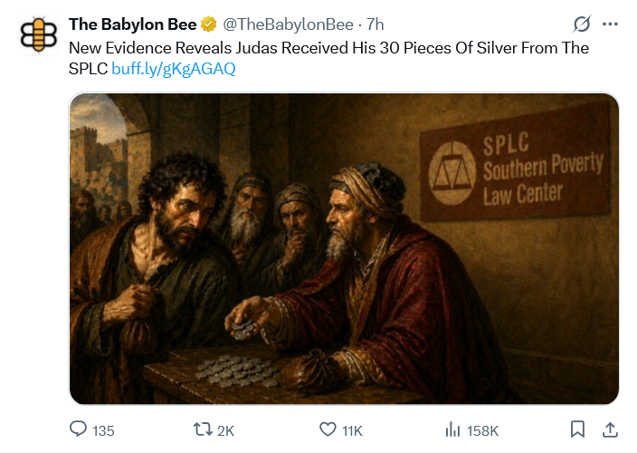 JERUSALEM — In a surprising new discovery that coincides with recent news headlines, biblical scholars confirmed that Judas Iscariot likely received his 30 pieces of silver from the Southern Poverty Law Center.