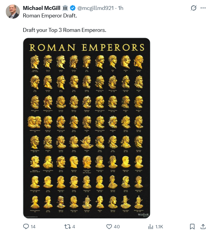 Constantine, and not solely due to him being the first Emperor to embrace Christianity, but also because he established the Empire in the East with such firm foundations that it endured another 1100 years. Augustine because he founded it and ushered in almost a badly needed century of internal peace for the Empire.  Aurelian, the best of the soldier emperors, who earned the title of Second Founder of the Empire by largely ending most of the chaos of the third century, ending the age of the hundred emperors. Put your picks in the comboxes.